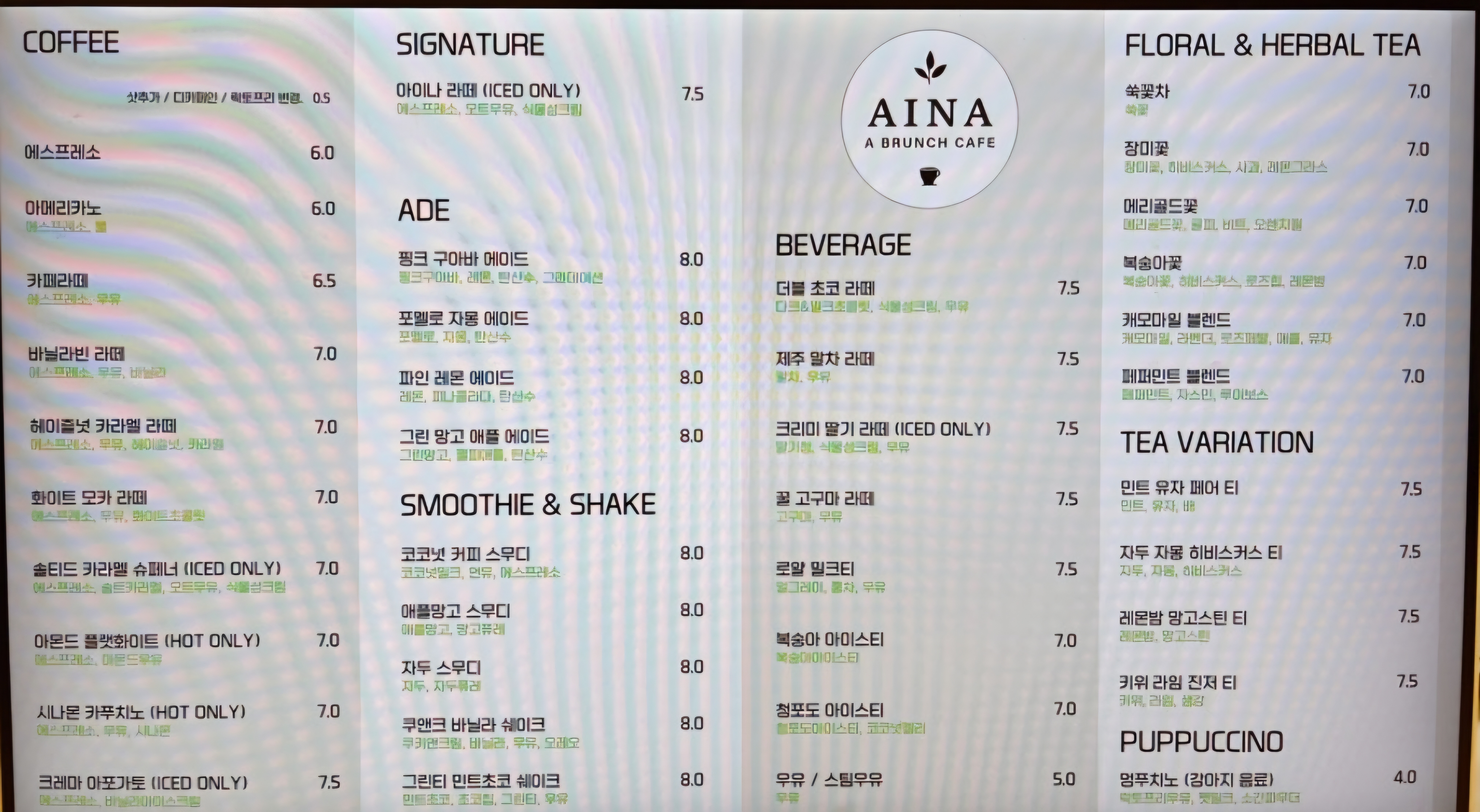 아이나카페 AINA, 꼭 한 번 들러보세요.