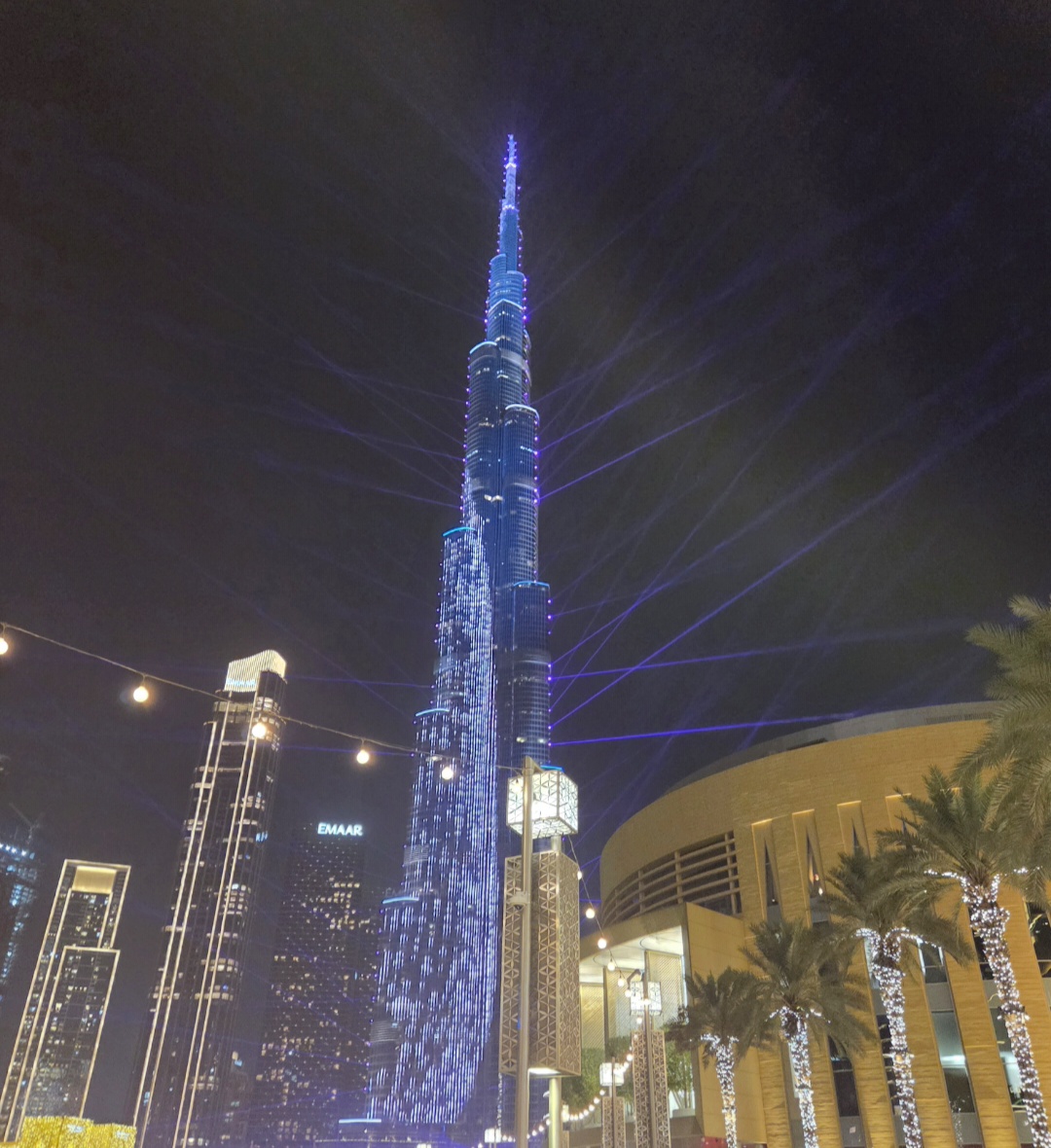 두바이는 낮과 밤의 매력이 완전히 다른 도시였다. 낮에는 사막의 태양 아래 반짝이는 초고층 빌딩이, 밤에는 도시 전체가 빛으로 살아나는 듯했다. 그중에서도 단연 가장 압도적인 순간은 세계에서 가장 높은 건축물, 부르즈 할리파에서 펼쳐지는 레이저쇼였다. 사진으로만 보던 장면을 눈앞에서 마주했을 때, 말 그대로 숨이 멎는 느낌.